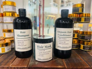 Organic Shampoo: Expertly formulated with powerful ingredients, our shampoo promotes and hydrates the hair and scalp while balancing the PH of hair.